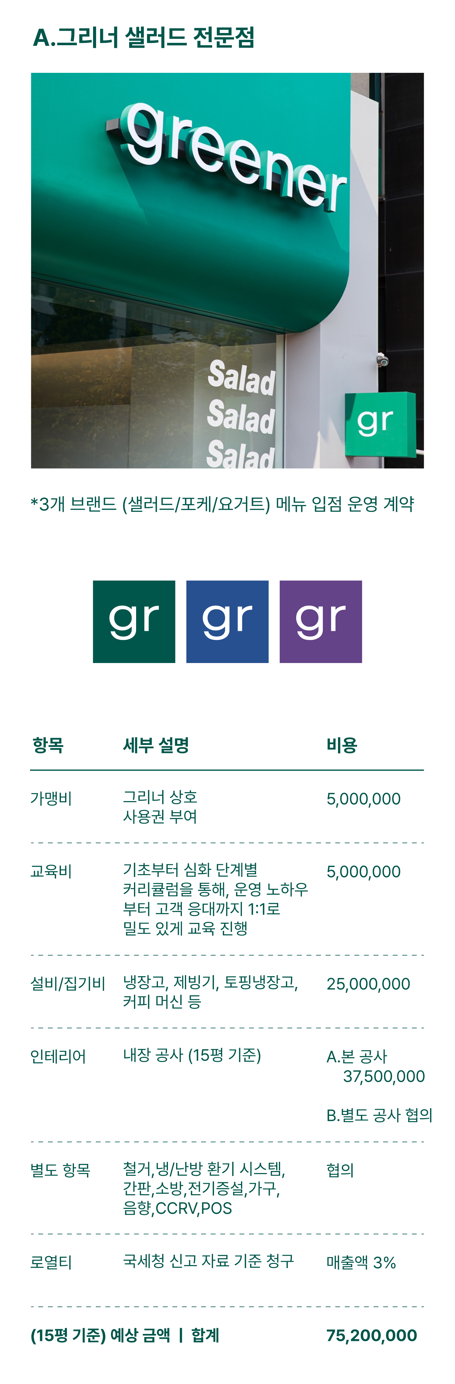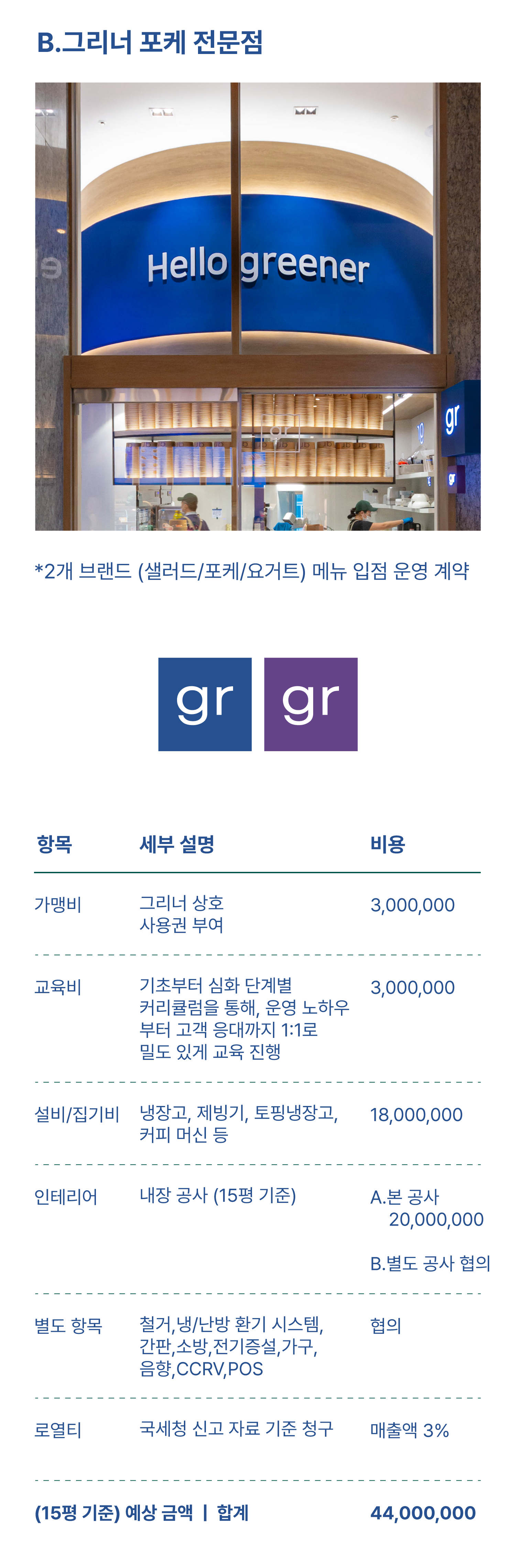 그리너는 투명한 창업 비용 안내를 통해 보다